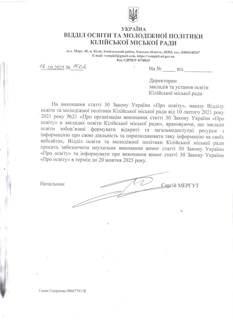 • 15.10.2025 Увага! Щодо організації освітнього процесу в закладах освіти Одеської області