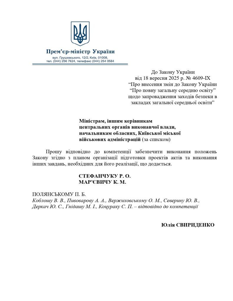 Про внесення змін до Закону України «Про повну загальну середню освіту» щодо запровадження заходів безпеки в закладах загальної середньої освіти 04.11.202504.11.2025