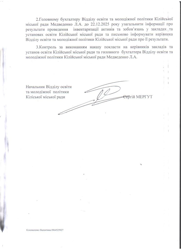 Відділ освіти та молодіжної політики > Новини > Про організацію роботи щодо проведення інвентаризації активів та зобов’язань в закладах та установах освіти Кілійської міської ради