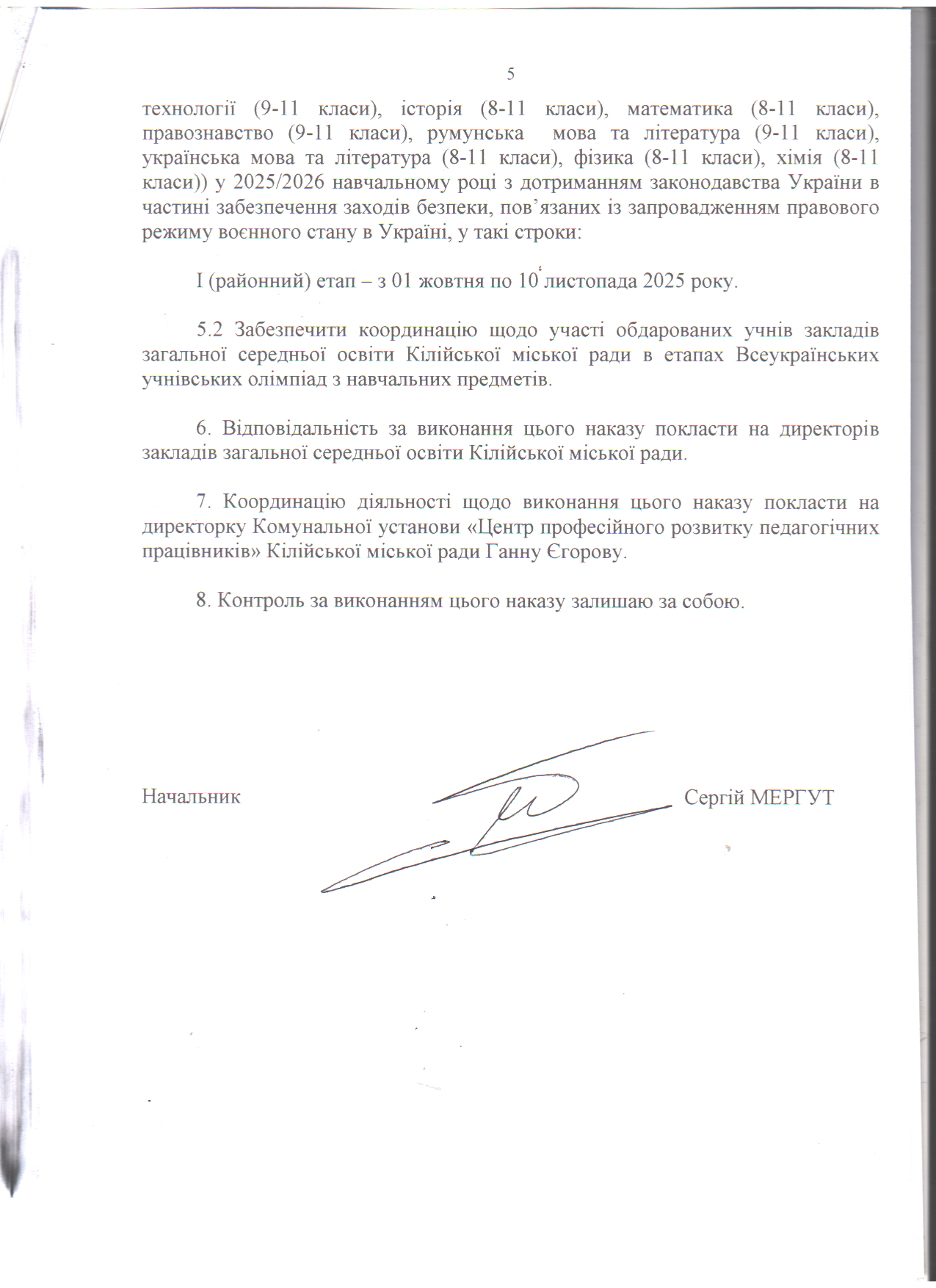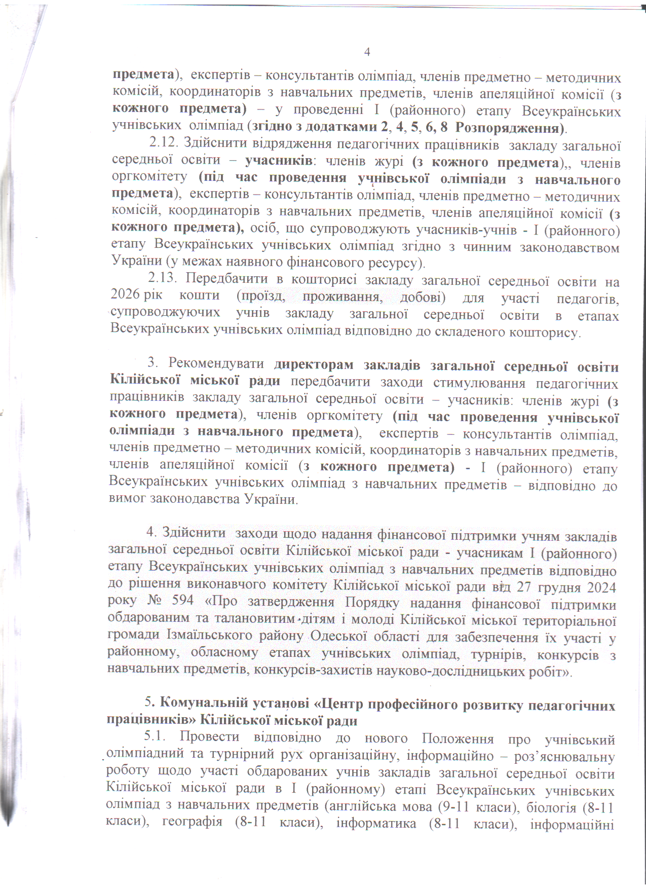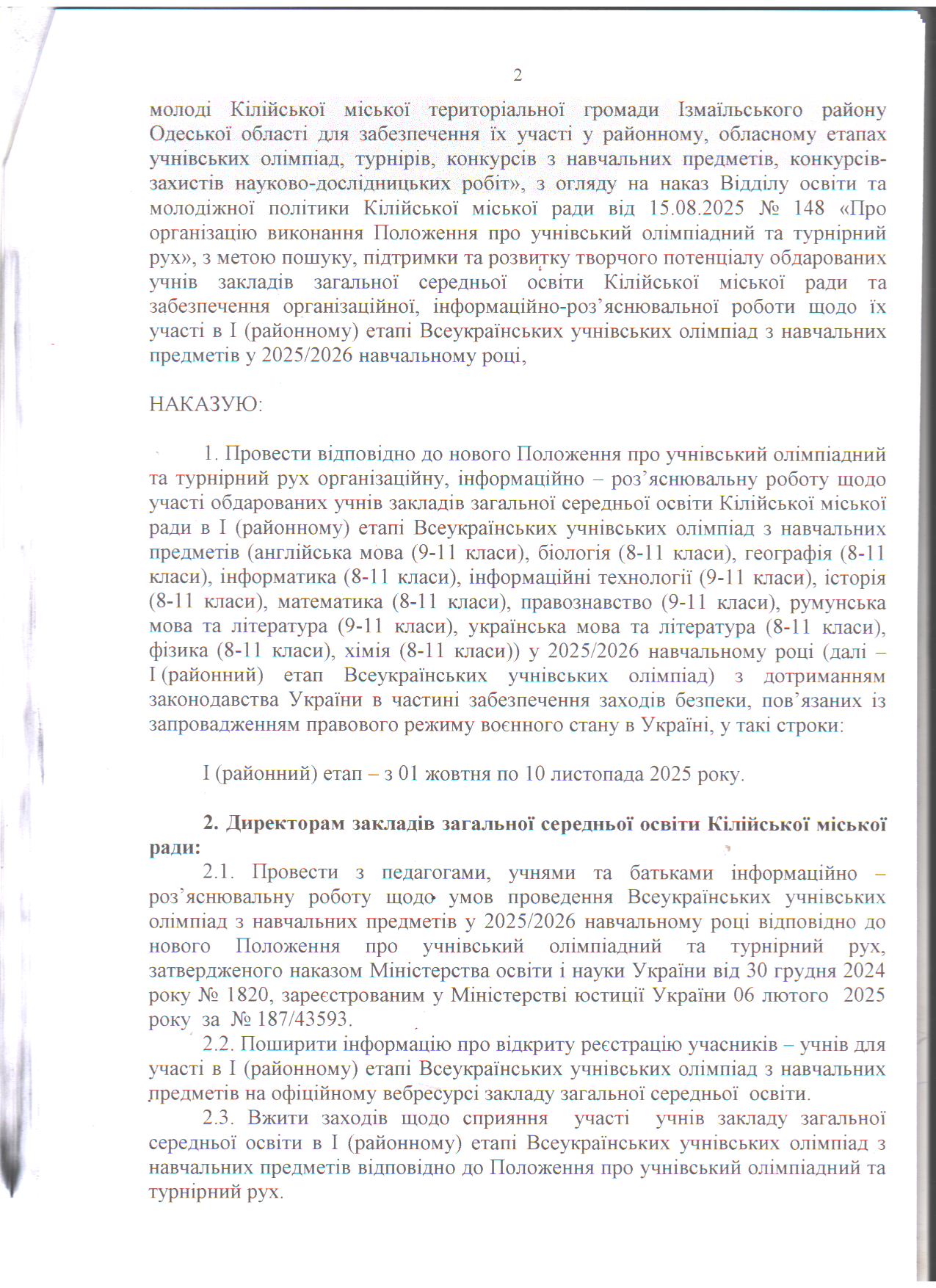 Відділ освіти та молодіжної політики > Новини > Про організацію участі учнів закладів загальної середньої освіти Кілійської міської ради в І (районному) етапі Всеукраїнських учнівських олімпіад з навчальних предметів у 2025/2026 навчальному році