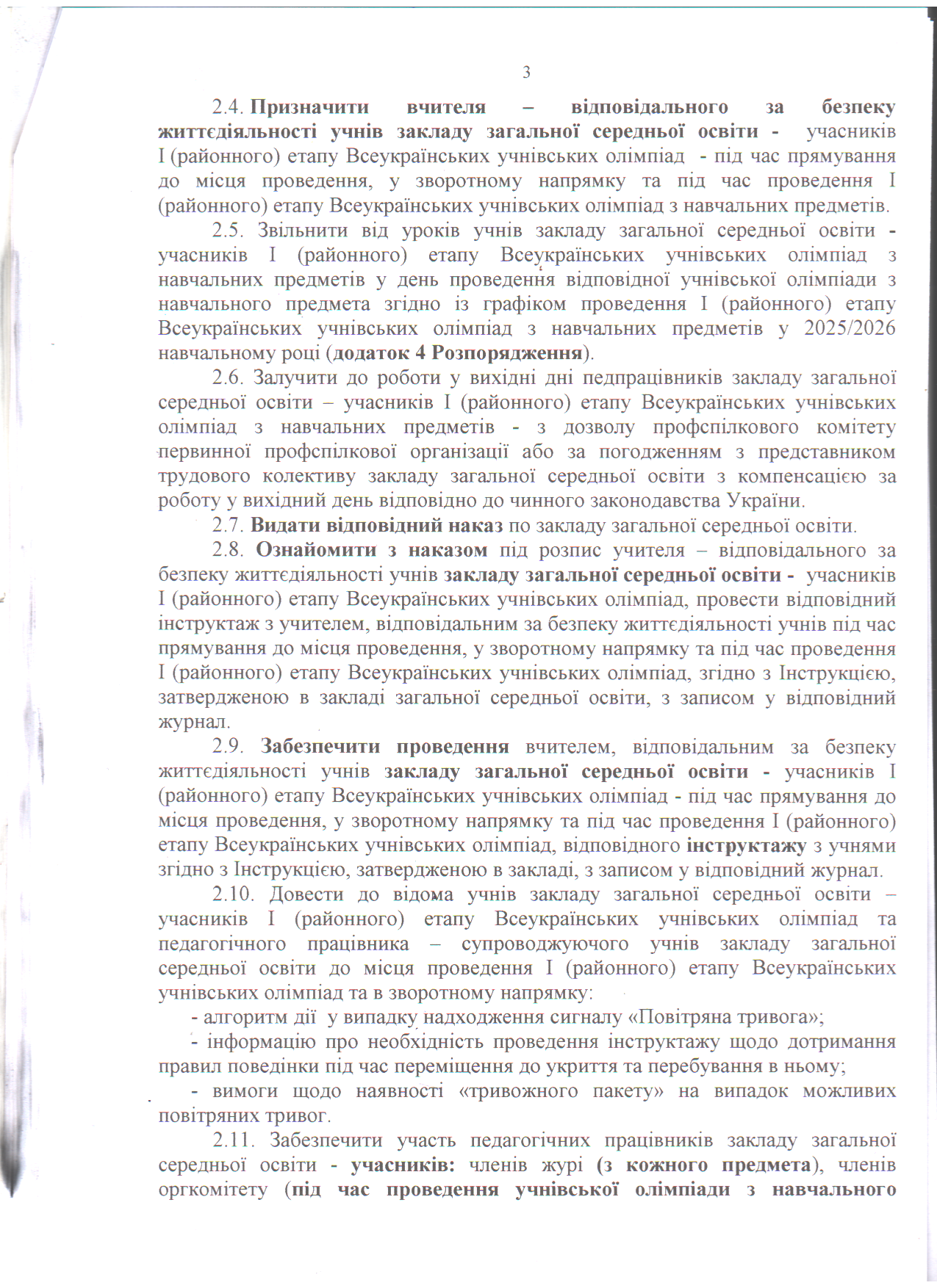 Про організацію участі учнів закладів загальної середньої освіти Кілійської міської ради в І (районному) етапі Всеукраїнських учнівських олімпіад з навчальних предметів у 2025/2026 навчальному році