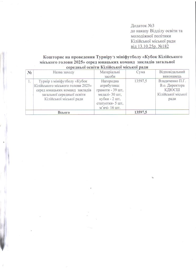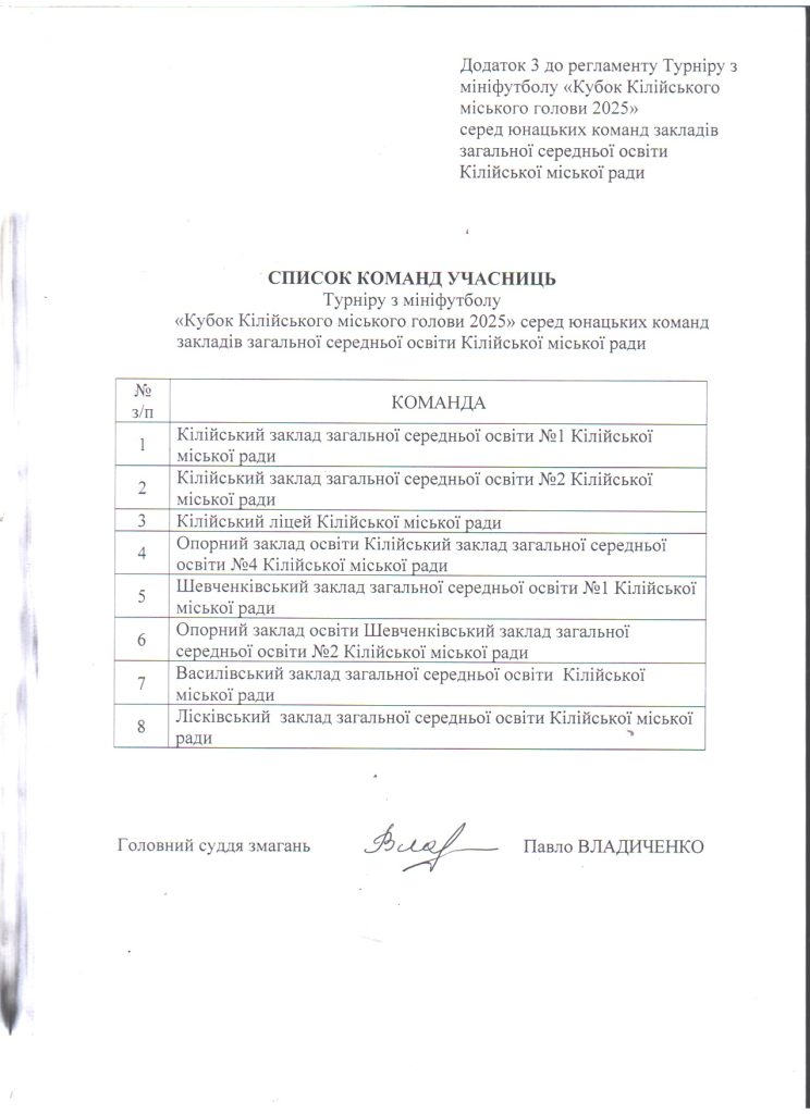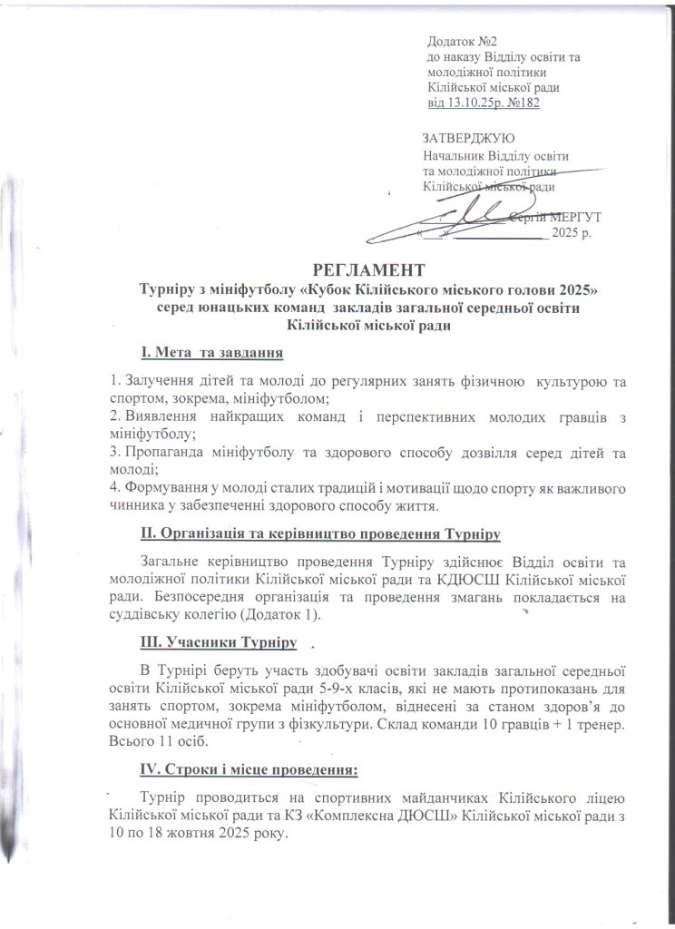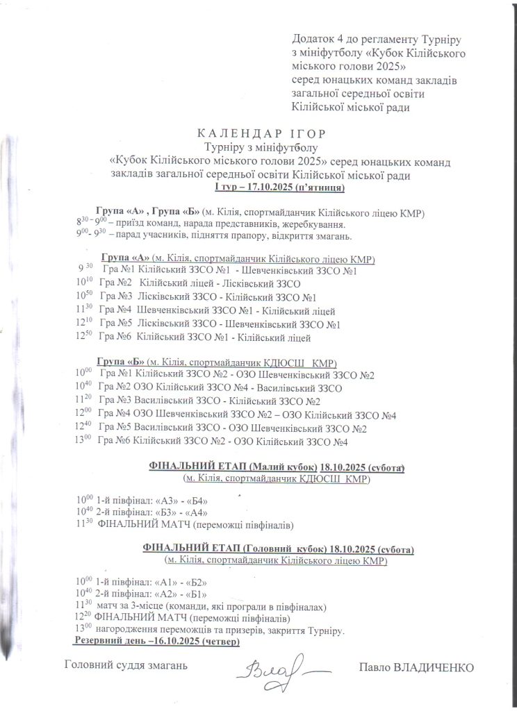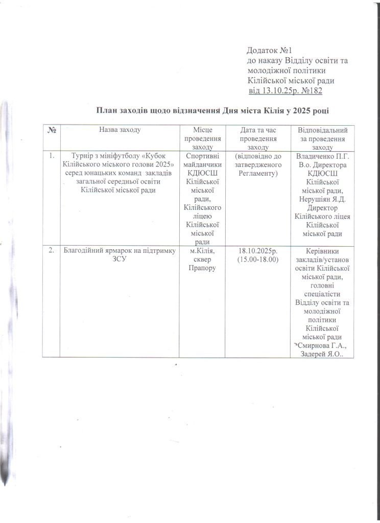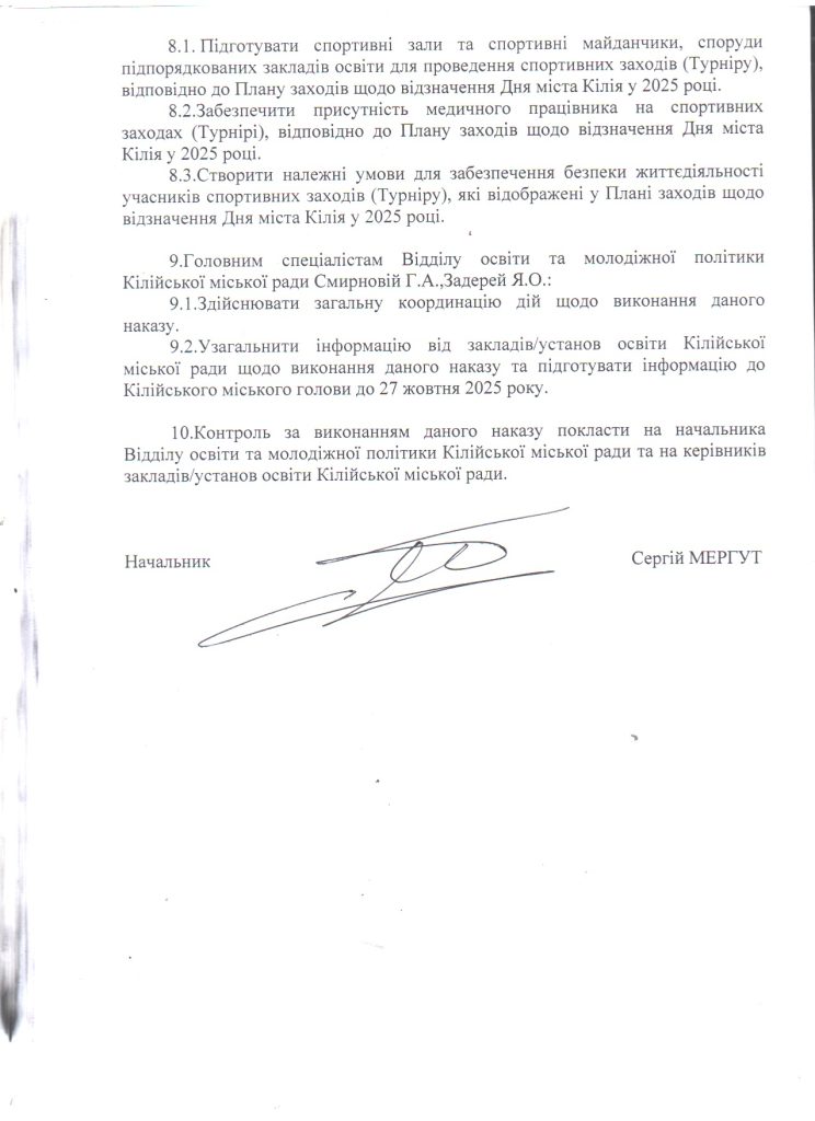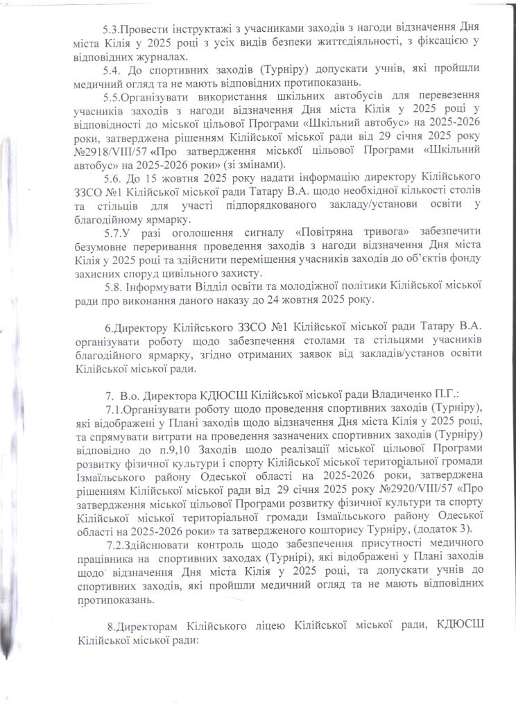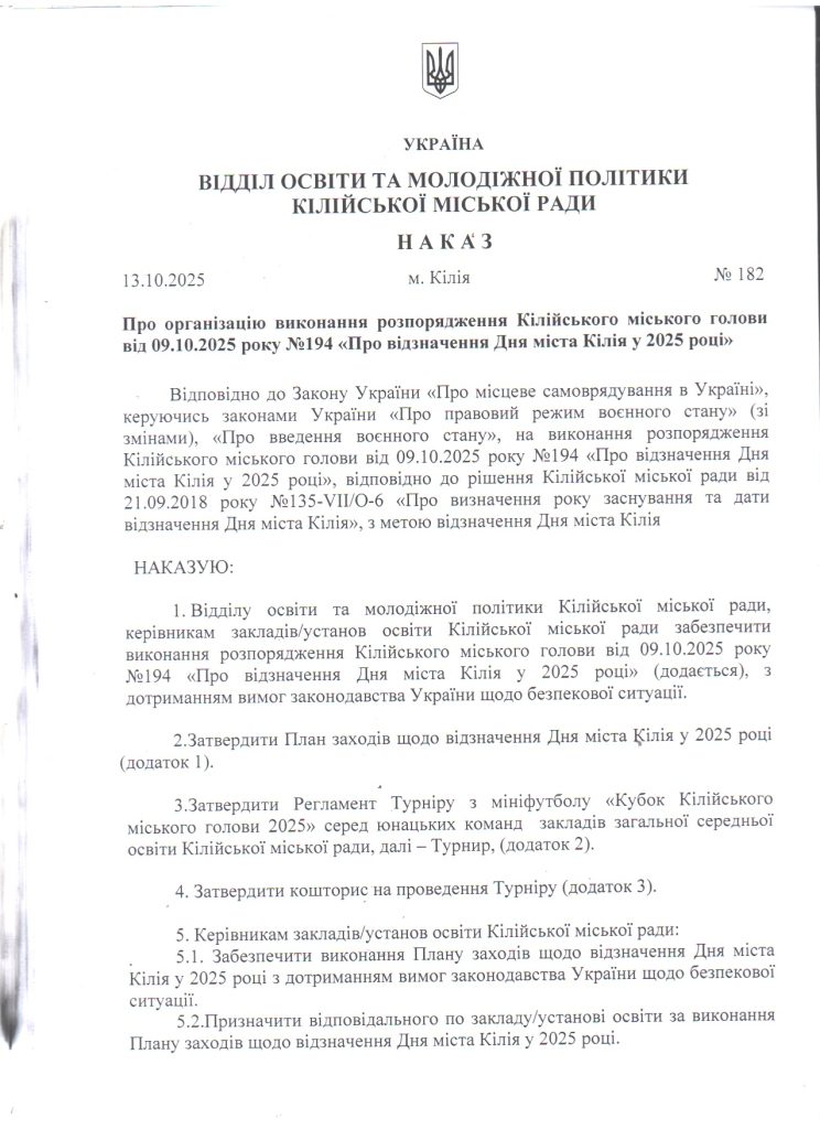 Відділ освіти та молодіжної політики > Новини > Про організацію виконання розпорядження Кілійського міського голови від 09.10.2025 року №194 “Про відзначення Дня міста Кілія у 2025 році”