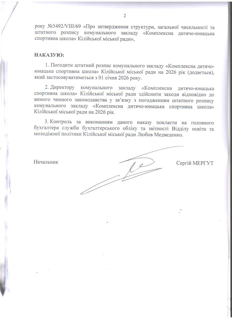 Про погодження штатного розпису комунального закладу “Комплексна дитячо-юнацька спортивна школа” Кілійської міської ради на 2026 рік 03.02.2026