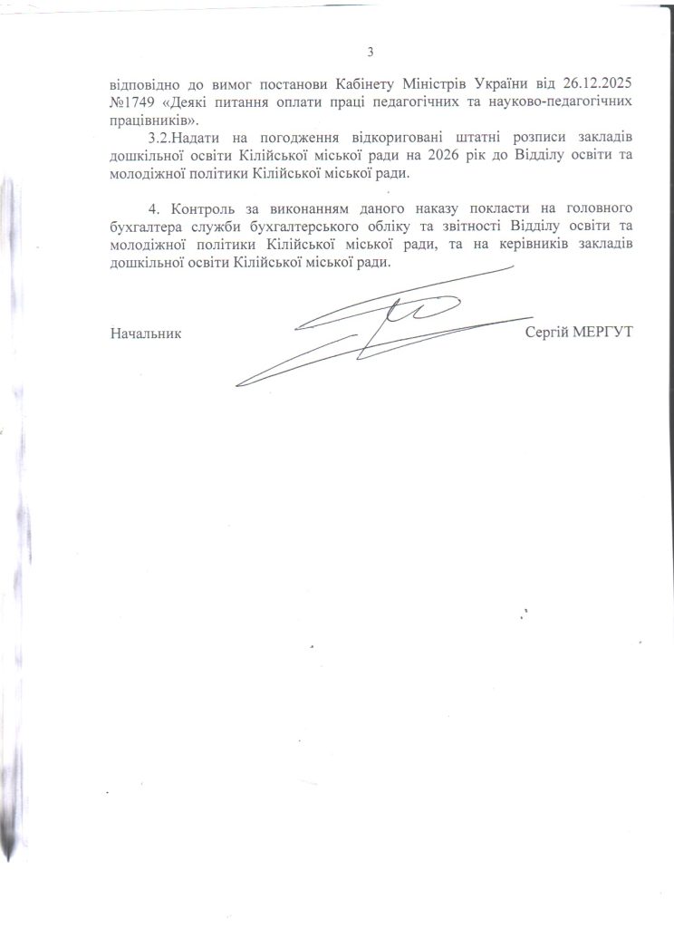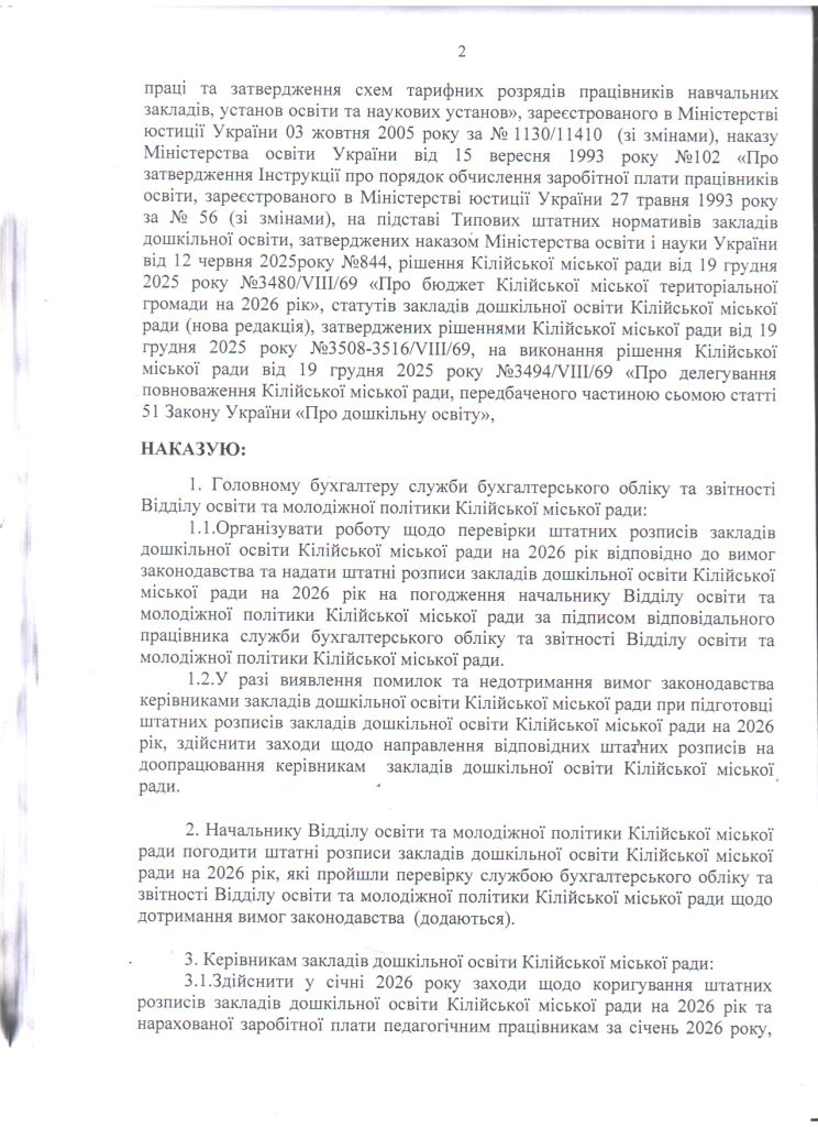 Про погодження штатних розписів закладів дошкільної освіти Кілійської міської ради 08.01.202608.01.2026