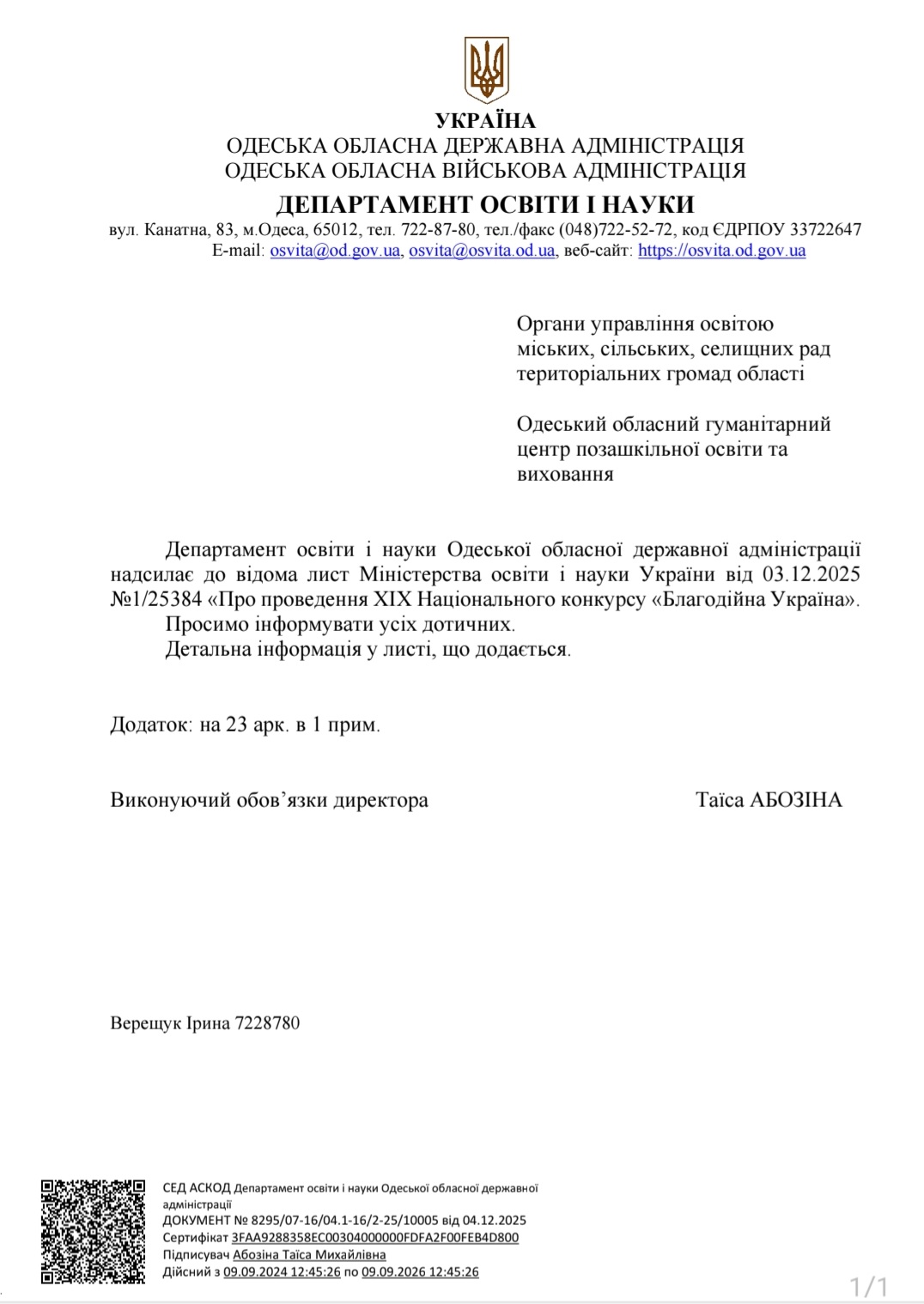 Про проведення ХІХ Національного конкурсу “Благодійна Україна” 05.12.202505.12.2025 Детальніше про умови конкурсу: https://drive.google.com/drive/folders/15y7wnZWE3NgK1kfzTy7qPz9T8PL0ywTB?usp=sharing