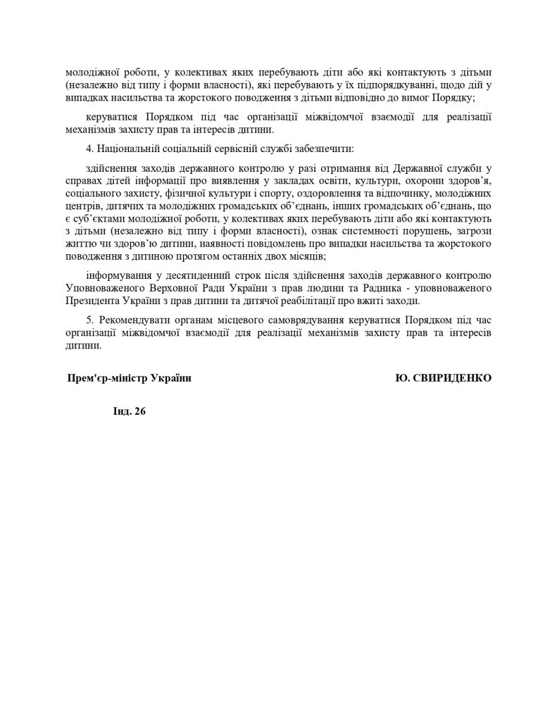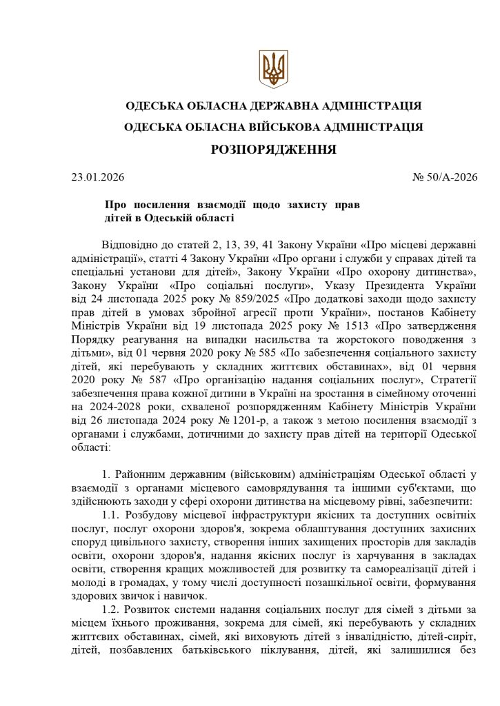 Щодо Порядку реагування на випадки насильства та жорстокого поводження з дітьми 30.01.2026 Додатки до постанови Кабінету Міністрів України та до розпорядження Одеської обласної (військової) державної адміністрації