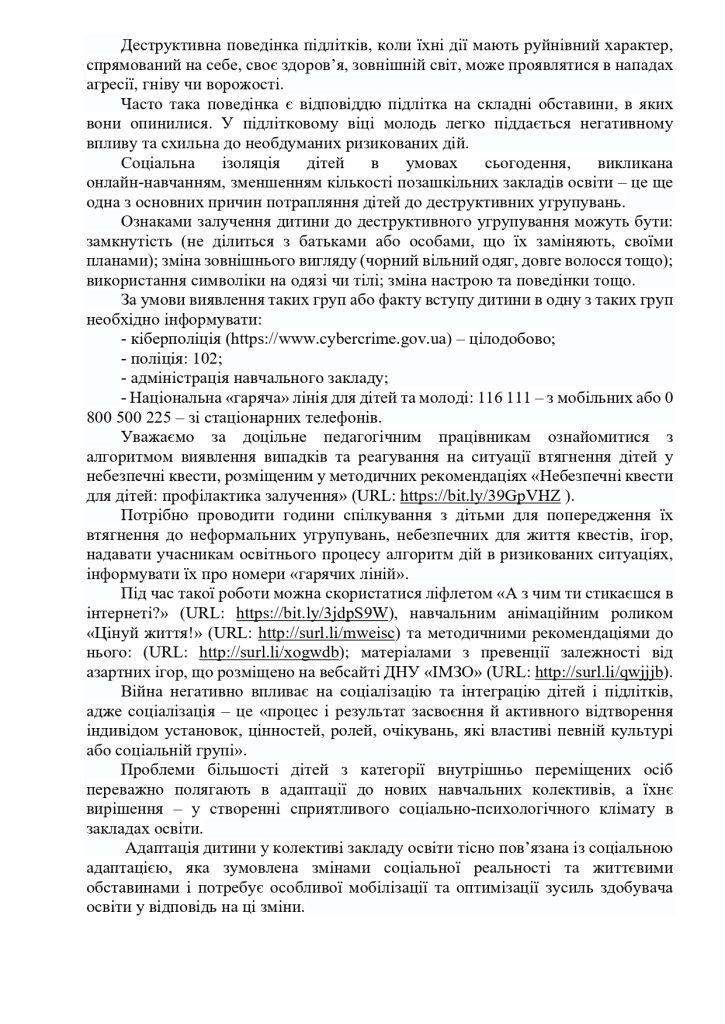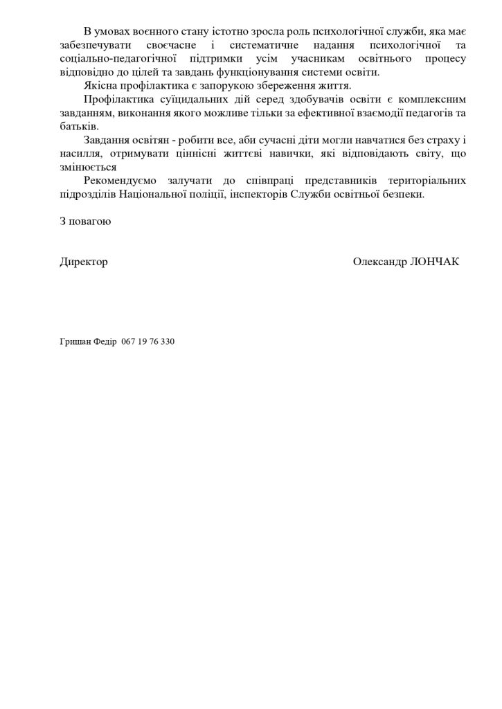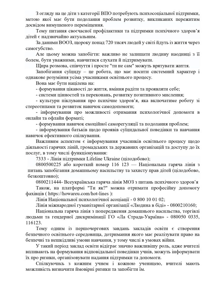 Щодо роботи закладів освіти з питань попередження вчинення здобувачами освіти суїцидів та навмисних самоушкоджень 20.11.202520.11.2025